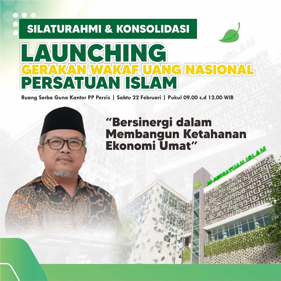 setelah sukses pelaksanaan Soft launching wakaf uang yang diadakan pada hari minggu tanggal 07 juli 2024, Lembaga Wakaf Persatuan Islam akan segera melaksanakan silaturahmi dan konsolidasi Lauching Gerakan Wakaf Uang Nasional Persatuan Islam dengan tema "Bersinergi dalam Membangun ketahanan Ekonomi Umat", yang dilaksanakan pada hari sabtu tanggal 22 Februari 2025 di ruang serba guna kantor persatuan islam (PERSIS), adapun gerakan ini tidak lain untuk mengajak para anggota tasykil Pimpinan Pusat, Anggota Persatuan Islam dan Masyarakat pada umumnya untuk mendukung pemberdayaan ekonomi Umat melalui sistem wakaf uang. Dana yang telah dikumpulkan akan diinvestasikan dan hasilnya bisa digunakan untuk kepentingan sosial, baik berupa fasilitas umum, progam renovasi dan beasiswa kelompok kurang mampu untuk bersekolah, kegiatan keagaaman, atau subsidi kebutuhan pokok.